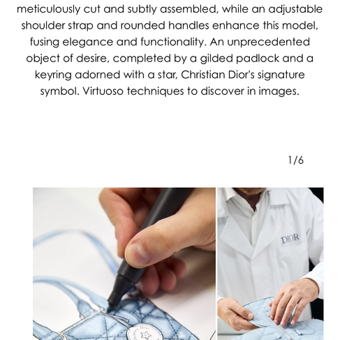 The collection page will most likely stay on the website (unless the brand decides to discontinue the bag at some point). Therefore, making the description thoughtful rather than formal is essential. In the case of Dior, the description tends to be more formal, and some parts could be developed further to engage with clients.